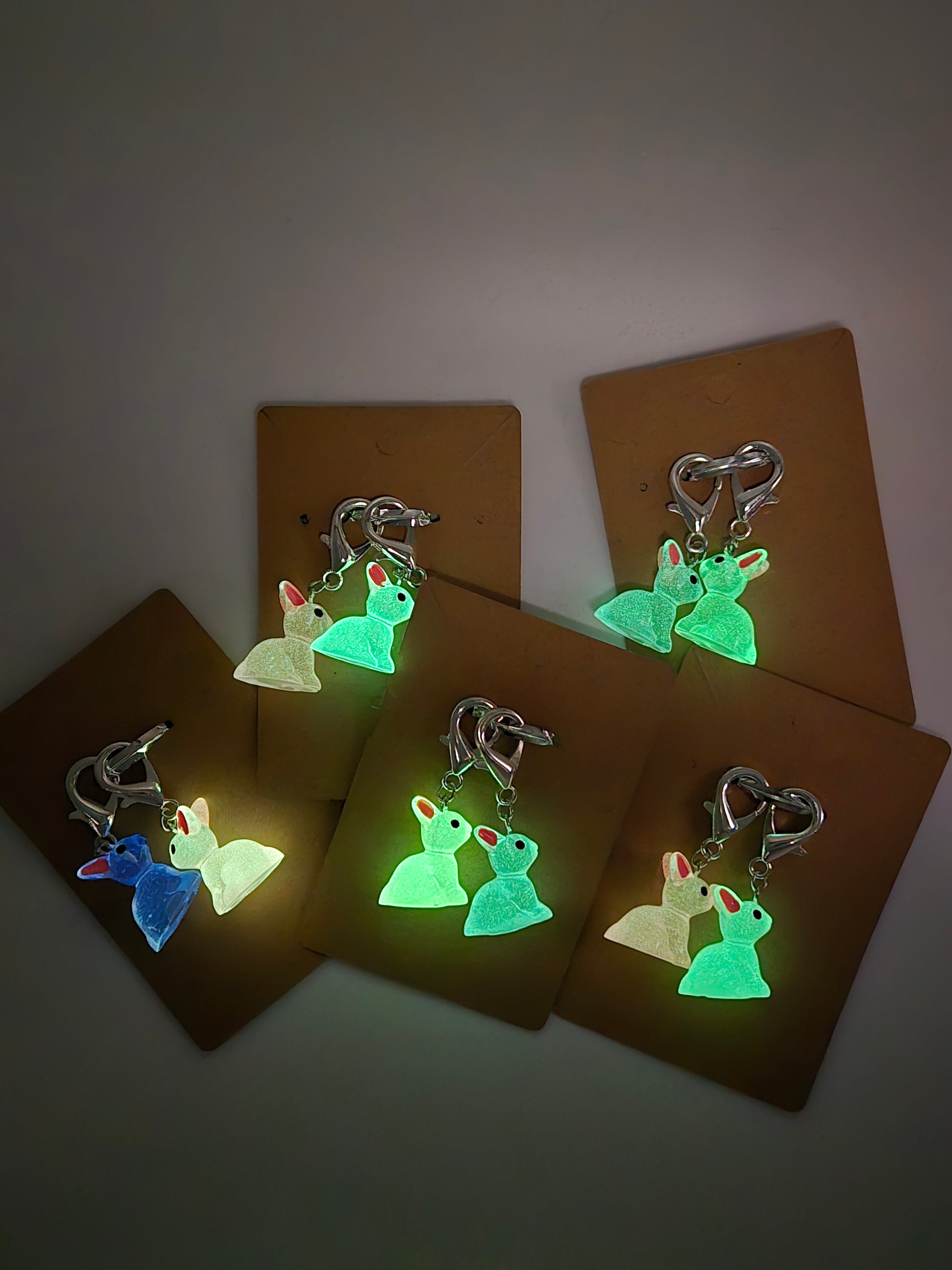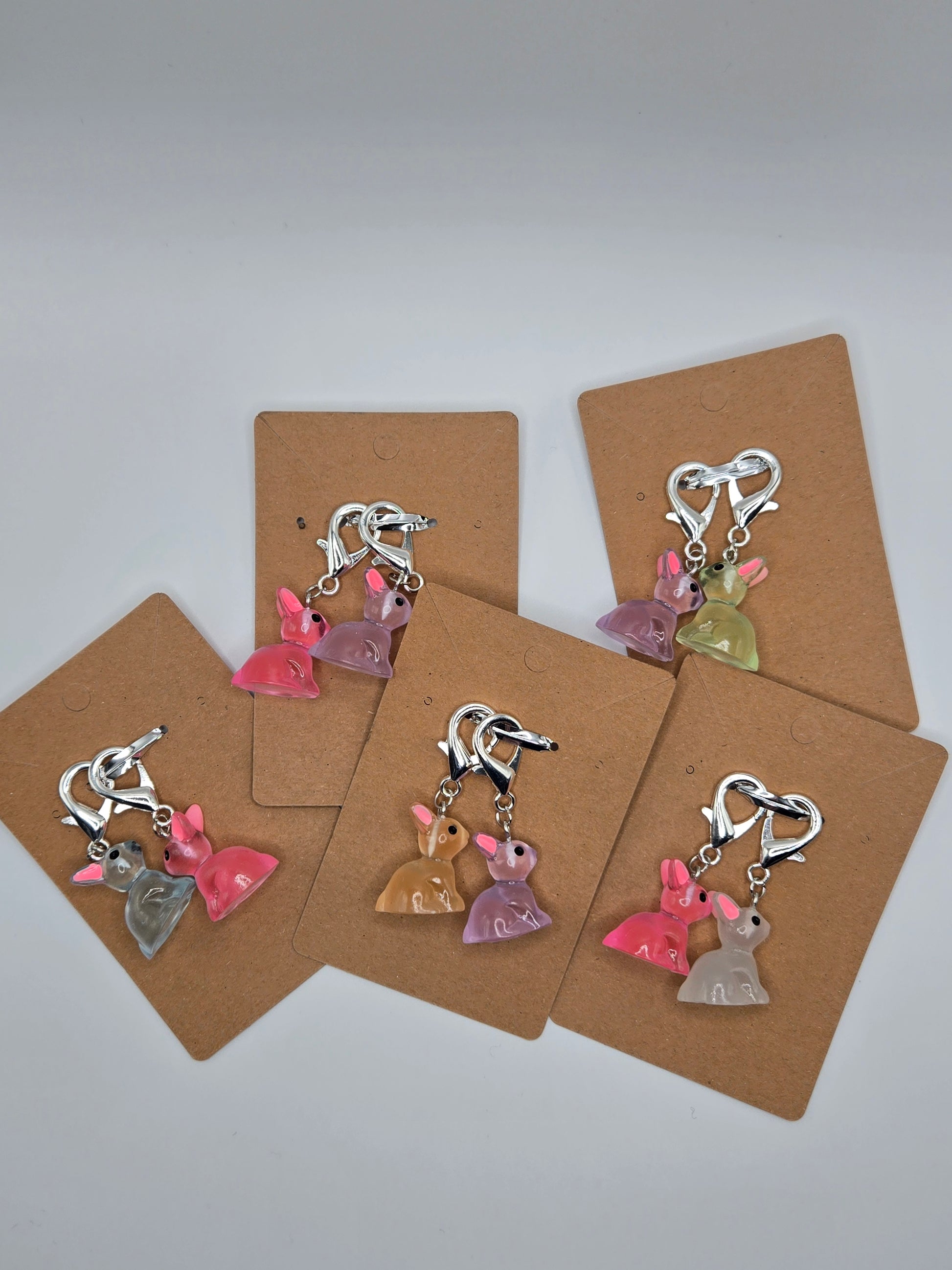 Glow in the dark bunny stitch markers.