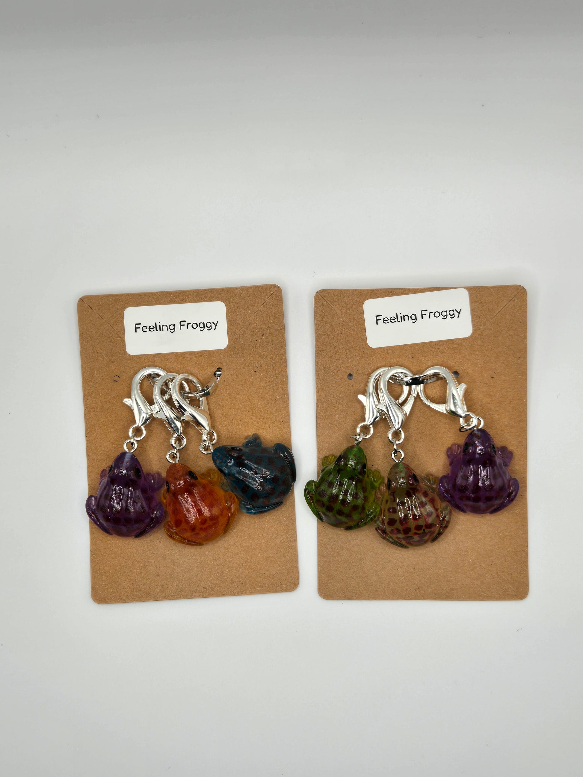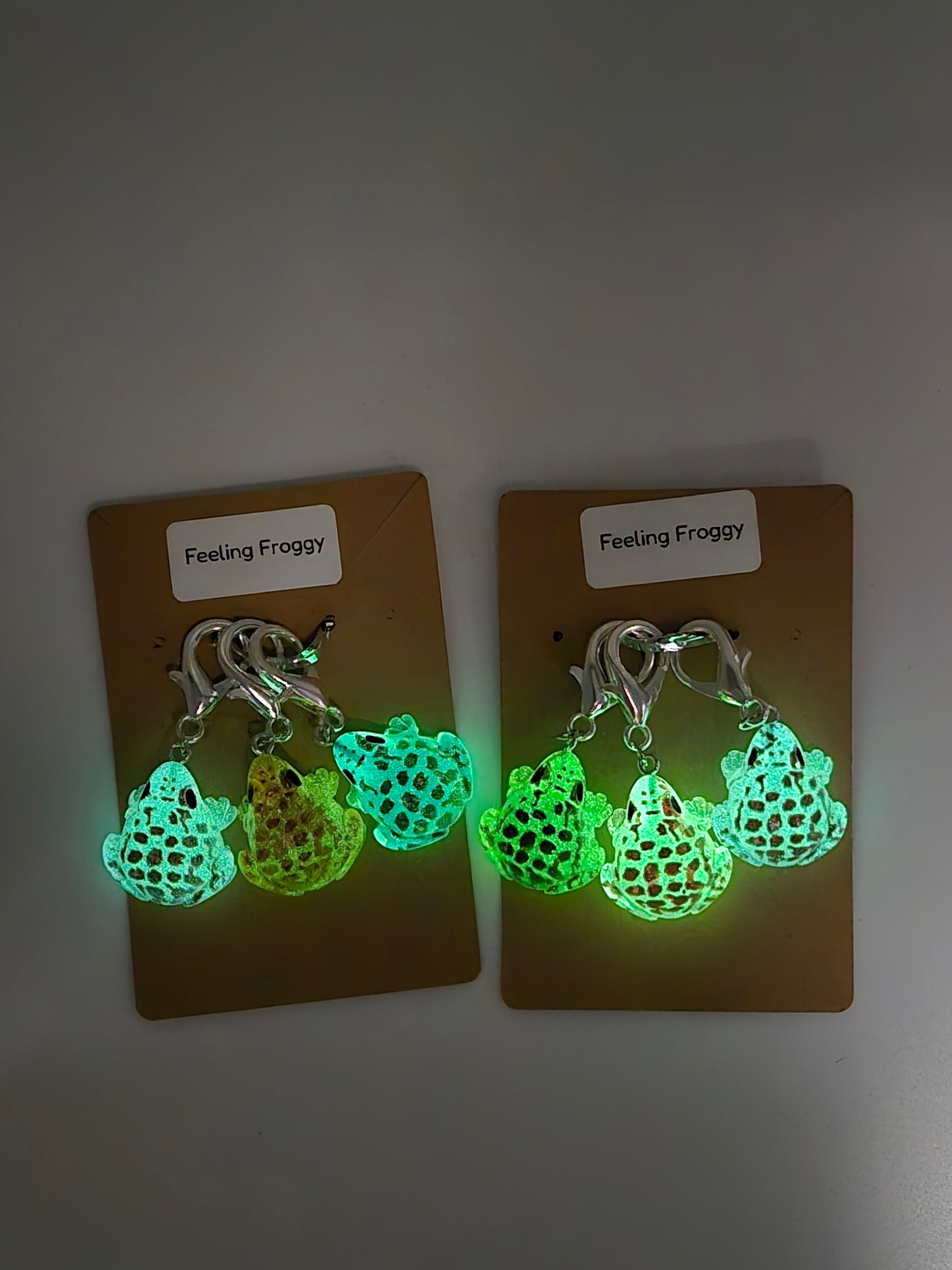 Glow in the dark frog stitch markers.